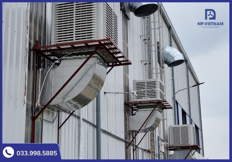 Thiết kế: Máy có hai phiên bản hướng thổi Lên hoặc hướng thổi Xuống, cho phép lắp đặt linh hoạt trên mái tôn hoặc kết hợp với hệ thống ống gió để dẫn khí mát đến từng vị trí làm việc.