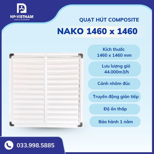 Cấu tạo, thông số kỹ thuật quạt hút công nghiệp composite cánh nhôm NAKO 1460