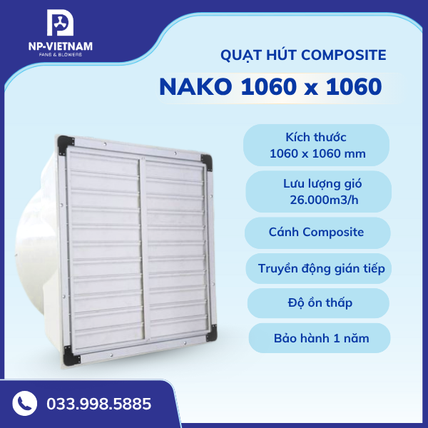 Quạt hút công nghiệp loại nhỏ NAKO là lựa chọn tối ưu cho các nhà xưởng, trang trại hoặc nhà vườn cần thông gió hiệu quả mà vẫn tiết kiệm điện năng. Với thiết kế gọn gàng, truyền động gián tiếp và vật liệu composite cao cấp, sản phẩm NAKO RTC-1060 mang lại luồng khí tươi mát, giảm nhiệt nhanh chóng và vận hành bền bỉ trong mọi điều kiện.