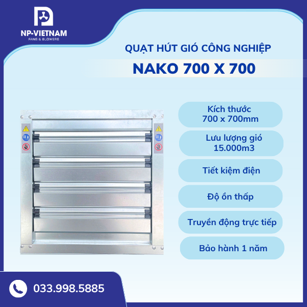 - Phân phối chính hãng: NP Việt Nam là nhà sản xuất và phân phối quạt hút công nghiệp 700x700 NAKO, đảm bảo hàng mới 100%, đầy đủ CO–CQ, xuất xứ rõ ràng.
