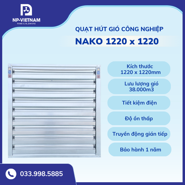 Liên hệ ngay hôm nay để nhận báo giá quạt hút công nghiệp 1220x1220 NAKO tốt nhất và được tư vấn miễn phí về giải pháp thông gió nhà xưởng trọn gói. HOTLINE 033 998 5885.