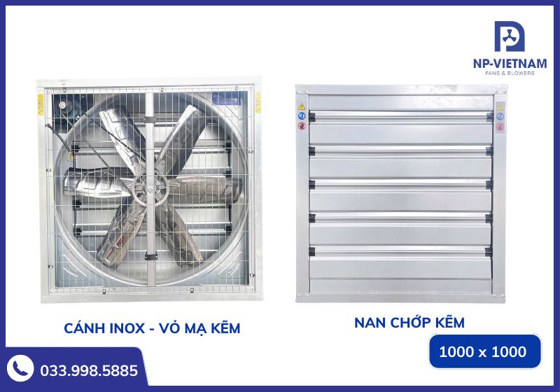 Hai mẫu quạt hút công nghiệp 1000x1000 inox và kẽm từ thương hiệu NAKO