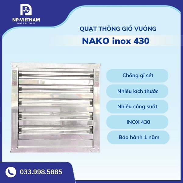 Dòng quạt thông gió vuông inox thương hiệu NAKO do NP Việt Nam phân phối hội tụ những đặc tính kỹ thuật ưu việt, giải quyết triệt để các bài toán khó về vận hành và chi phí cho doanh nghiệp.