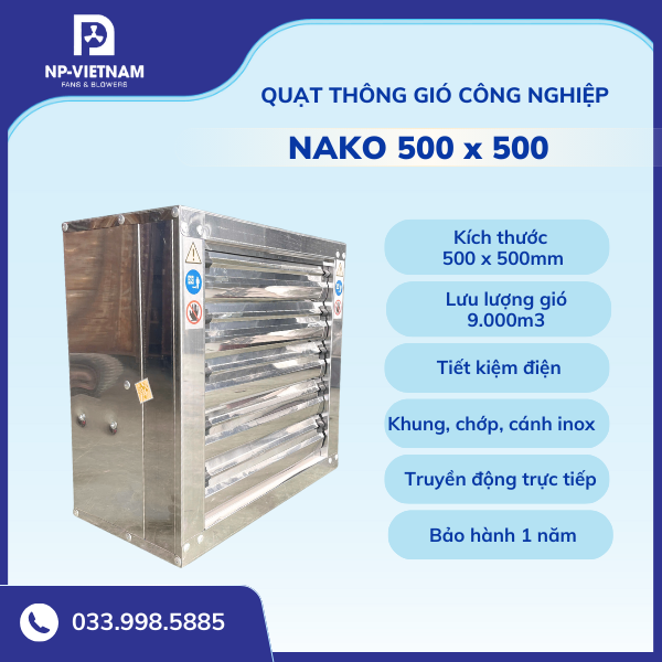 Để nhận báo giá quạt thông gió 500x500 chính xác và phù hợp, khách hàng nên liên hệ trực tiếp với NP Việt Nam để được tư vấn chi tiết về sản phẩm và phương án lắp đặt. HOTLINE 033 998 5885.