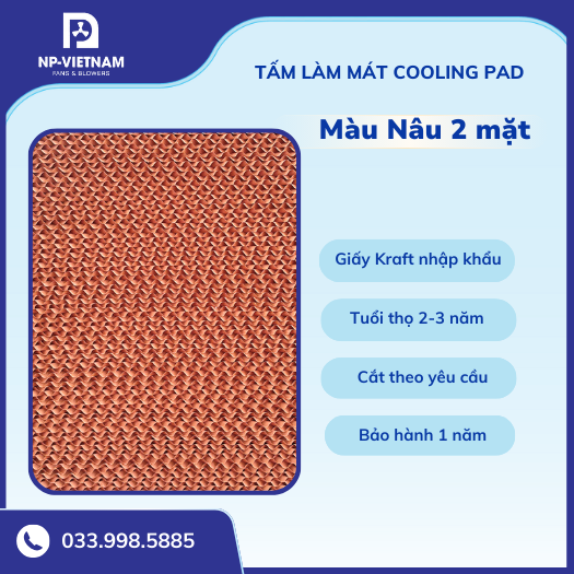 Tấm cooling pad nâu hoạt động dựa trên nguyên lý bay hơi nước tự nhiên: khi không khí nóng đi qua bề mặt tấm có nước chảy, hơi nước sẽ hấp thụ nhiệt và bốc hơi, tạo ra luồng gió mát dịu. Sản phẩm có cấu trúc sóng giấy đặc biệt, không hấp thụ nước mà chỉ giữ nước trên bề mặt nên nhờ vậy tăng hiệu suất làm mát và tuổi thọ.