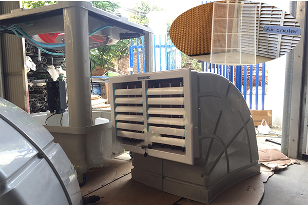 HNY18-B có tên gọi là máy làm mát không khí nhà xưởng được thiết kế với tiện ích tập trung 1 hướng gió. Không khí nhờ quá trình bay hơi nước hấp thụ hơi nóng bên trong máy xuyên qua tấm cooling pad, không khí nóng sẽ được hấp thụ hoàn toàn nhờ diện tích trao đổi nhiệt giữa không khí nóng và hơi nước để trở thành không khí mát.