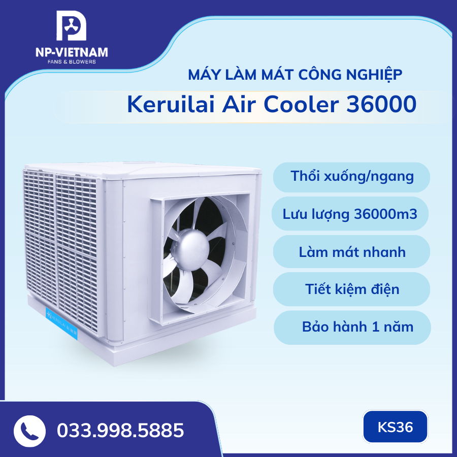 Với thiết kế bền bỉ, công nghệ bay hơi nước tiên tiến và khả năng tiết kiệm điện vượt trội, quạt hơi nước Keruilai KS36 (gồm KS36A & KS36B) là giải pháp làm mát công nghiệp đáng đầu tư. Nếu bạn đang tìm kiếm một thiết bị quạt Keruilai chính hãng hiệu quả và bền bỉ, KS36 chính là lựa chọn hoàn hảo.