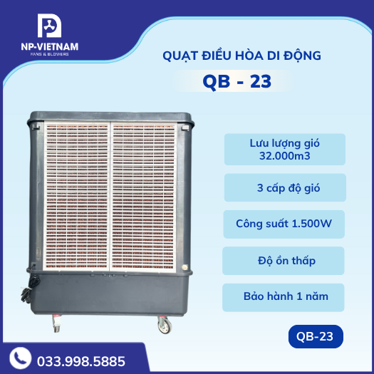 Khi nhiệt độ tăng cao, việc tìm một giải pháp làm mát hiệu quả cho không gian lớn là nhu cầu cấp thiết của nhiều doanh nghiệp. Quạt hơi nước công nghiệp QB-23 mang đến lựa chọn lý tưởng với công suất 1500W, lưu lượng gió mạnh 32.000 m³/h và khả năng vận hành êm ái. Đây là thiết bị vừa tiết kiệm chi phí, vừa đảm bảo không khí luôn thoáng mát, dễ chịu.