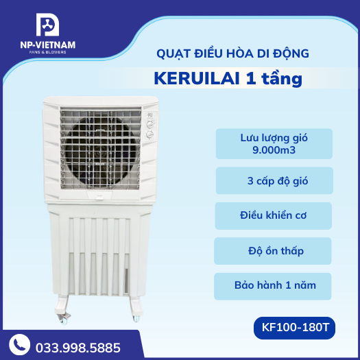Quạt hơi nước Air Cooler Keruilai 1 tầng là giải pháp làm mát lý tưởng cho không gian rộng, mang lại hiệu quả cao, tiết kiệm điện và thân thiện môi trường. Với nhiều model đa dạng, sản phẩm đáp ứng mọi nhu cầu từ văn phòng đến nhà xưởng. Lựa chọn Keruilai chính hãng, bạn sẽ có thiết bị bền bỉ, tiện lợi và an toàn cho không gian làm việc, sinh hoạt.