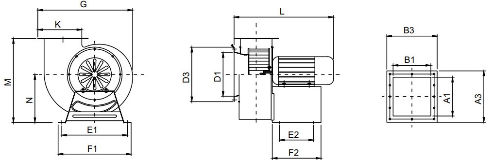 Quạt hút ly tâm trung áp: Là loại quạt có áp suất tầm trung quạt có khả năng tạo ra lưu lượng gió lớn thường được sử dụng để lắp cho các hệ thống hút bụi , thông gió cấp khí tươi trong các ngành công nghiệp.