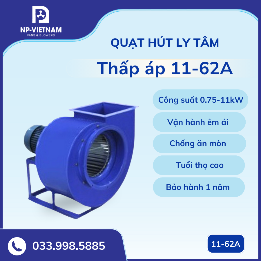 Ưu điểm nổi bật của quạt ly tâm thấp áp 11-62A
