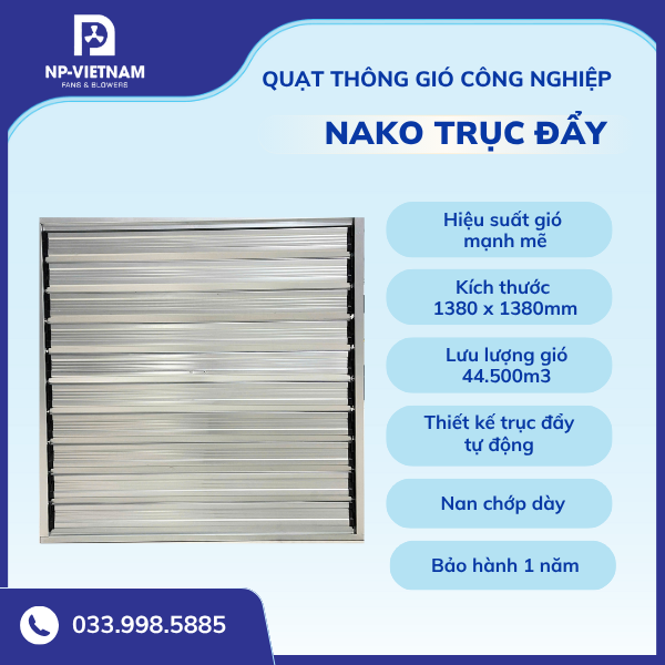 Quạt trục đẩy hiệu suất cao NAKO là lựa chọn hàng đầu của nhiều doanh nghiệp nhờ sự kết hợp hoàn hảo giữa chất lượng, hiệu suất và độ bền. Dưới đây là những lý do khiến sản phẩm trở nên khác biệt trên thị trường.