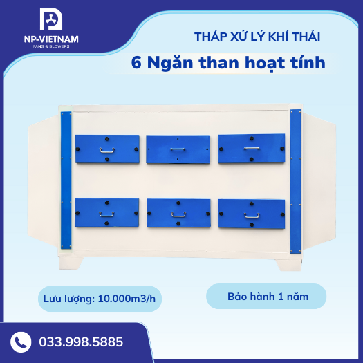 - Tháp than 6 ngăn: Dành cho nhà máy lớn, xử lý khí thải với lưu lượng cao.